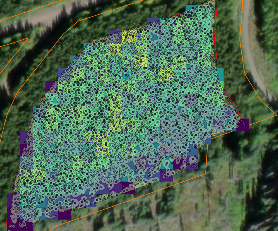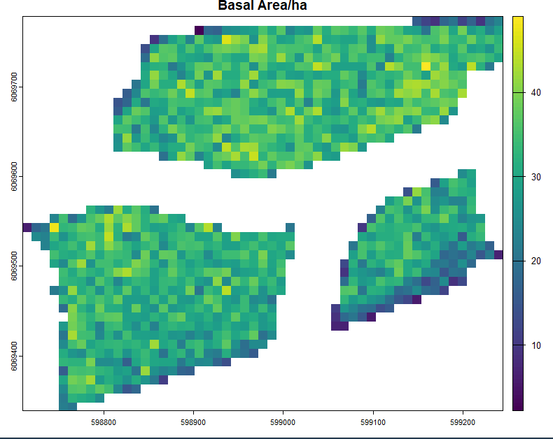 To support operational planning and spatial decision-making, stand conditions were summarized into 10 m × 10 m grid layers. These rasters included canopy cover, stems per hectare, and basal area, helping identify density patterns and structural variability that are difficult to interpret from tree-level outputs alone.