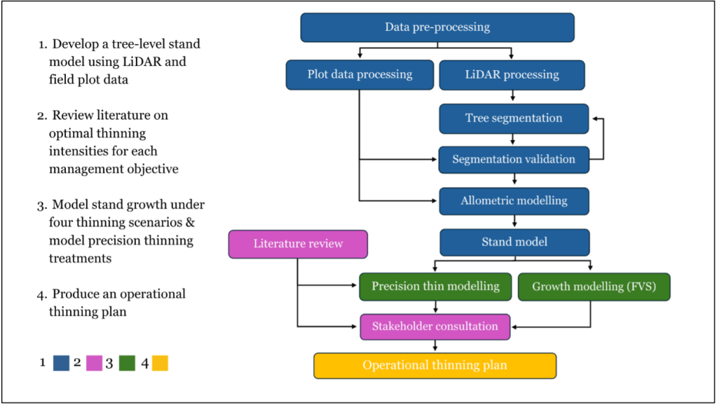 Using LiDAR data and tree-level modelling to design a thinning prescription that balances ecological resilience, cultural foraging access, and long-term stand health.