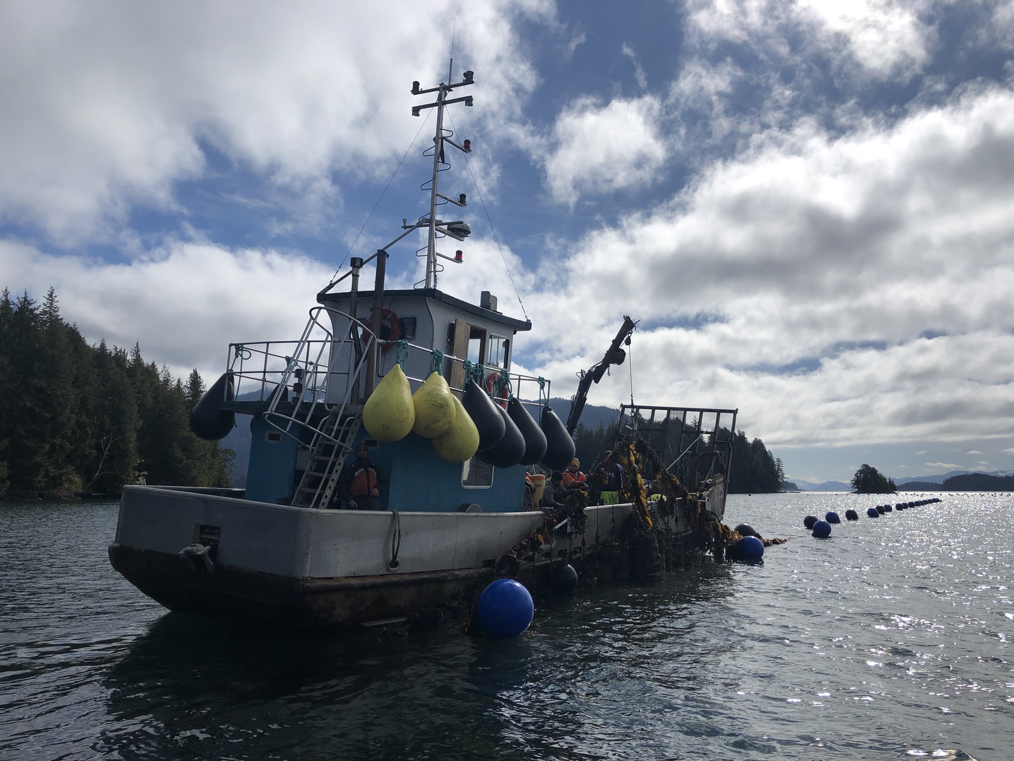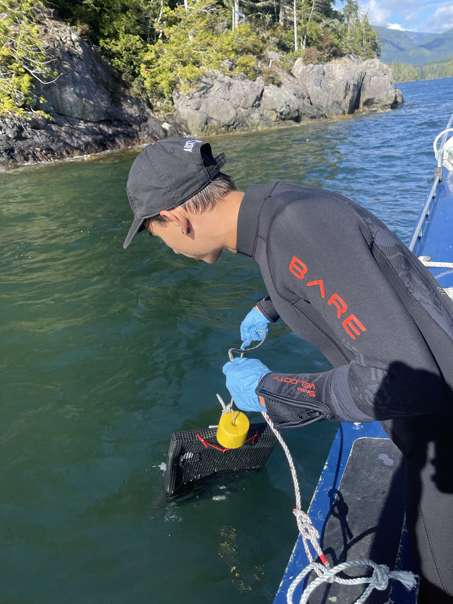 In parallel, we trialed a different restoration approach in Metlakatla waters near Prince Rupert. In collaboration with EcoTrust and the Metlakatla Development Corporation, we deployed seeded lines on an ocean tenure to explore the feasibility of line-based restoration and the transport of nursery-grown sporophytes to remote sites. This work allowed us to test how restoration methods adapted to different ecological and logistical conditions along the coast.